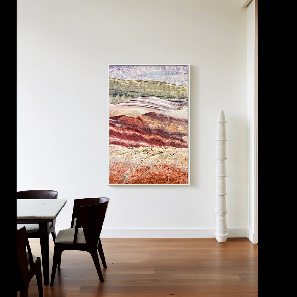 Brian Merriam’s landscapes are more than photographs; they are meditations on time itself. Following the death of his father in 2016, Merriam spent a year seeking out places where the earth reveals its own history—where layers of sediment, the remnants of glaciers, and the scars of volcanism tell a story measured in millennia. Camping for days at a time, waiting for the right light, he immersed himself in these vast, indifferent spaces, finding solace in their permanence.
