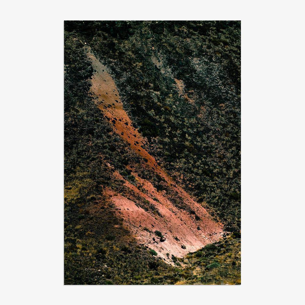 In Brian Merriam's Ancient Medicine series, taken during Merriam's travels through Alaska, the horizon is purposefully disregarded to give a feeling of immersion in the geology, asking the viewer to consider the slow tick of eons that have led to these compositions. A cliff face could be a boulder, a mountain no larger than a grain of sand.