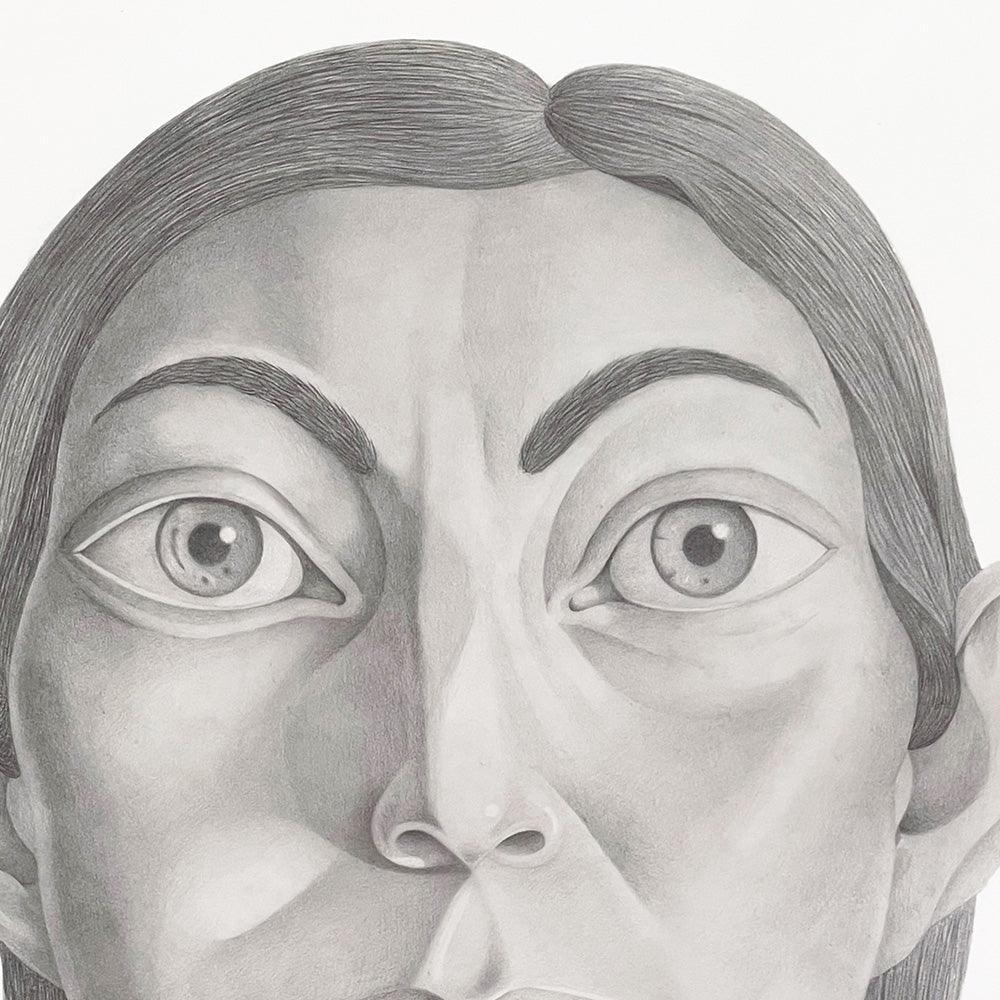 Shawn Polmo asserts that most people have a character or voice in their heads — whether we call our conscience, a god, or guardian angel, humans tend to feel like someone or something is experiencing or viewing our lives with us. This series of pencil works on paper loosely explores the personification of those ideas, choosing this medium to create a smooth, stone-like image inspired by the great sculptures of Italy. The result is work that is powerful and magnetic, the viewer drawn into the large and graceful figures, each wearing an untroubled expression. The exaggerated features — some magnified and out of proportion — create an image that’s close to human, but somehow not quite.