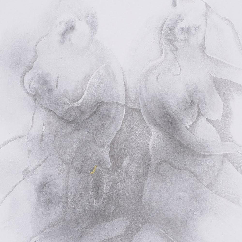 Mechanical pencil, graphite powder on paper Drawing based on initial breast body print | 2022
