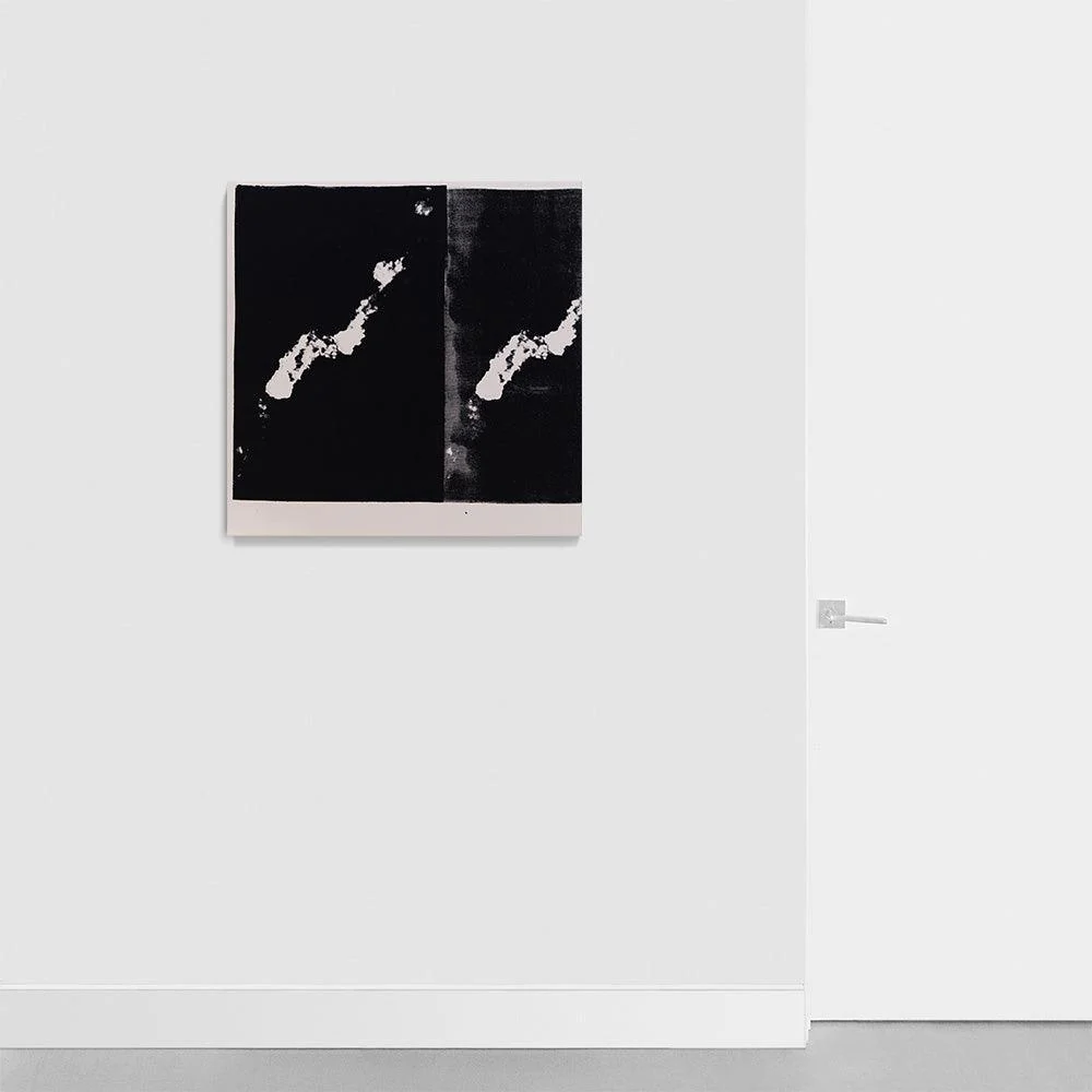 With this series, McMullen asserts that his practice has become “more like painting than printmaking”. His use of an image as a mark or brushstroke is evident in the repetitive forms cascading down or across pieces of paper and fabric. The compositions are reminiscent of strips of film and carry with them a feeling of movement or motion, an essential part of McMullen’s background in video and proof of his painterly approach to printmaking.
