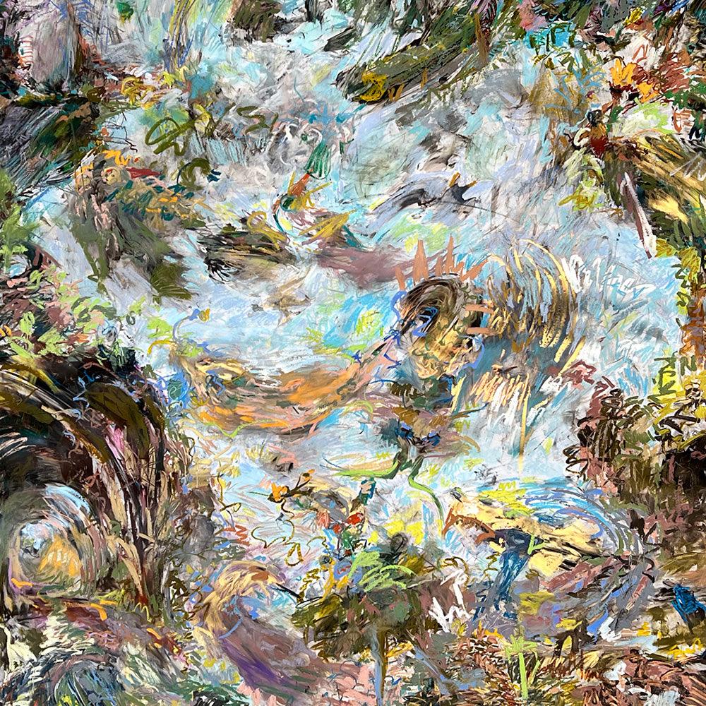 Chaos, In An Almost Classical Mode is artist Fei Li’s attempt to create an encyclopedia that examines the capacity for chaos inside a rigorous and coherent structure. Li’s approach is oblique, like walking a tightrope between visual dynamics and pandemonium. Inspired by the correspondences between James Joyce’s Ulysses and Homer’s Odyssey, the paintings in this series take the structure of historical artworks as their point of departure. Embodying the allusive nature of the works, the paintings weave an immense network of visual relationships into a labyrinth. Li purposefully uses small oil pastel sticks on large surfaces as a metaphor for the artist raising arms against manifest destiny, exploring what it means to confront an impossibility.