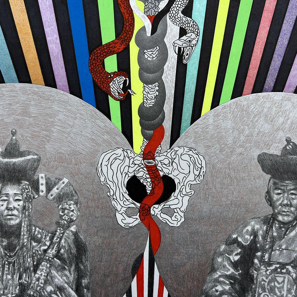 The primary medium in Eriko Tsogo’s Wrong Woman series isn’t charcoal — it’s her body. The artist creates body print drawings, drawing heavily on guidance by her ancestor spirits to create the esoteric work. Beginning with a chalk body print, the works grow into moments of resistance and reappropriation, reclamation and resignation — always expertly balancing the eternal struggle between control and the subconscious. Thematic inspiration was drawn from the artist’s longing for home and the tension between that static belonging and finding home in motion and displacement.