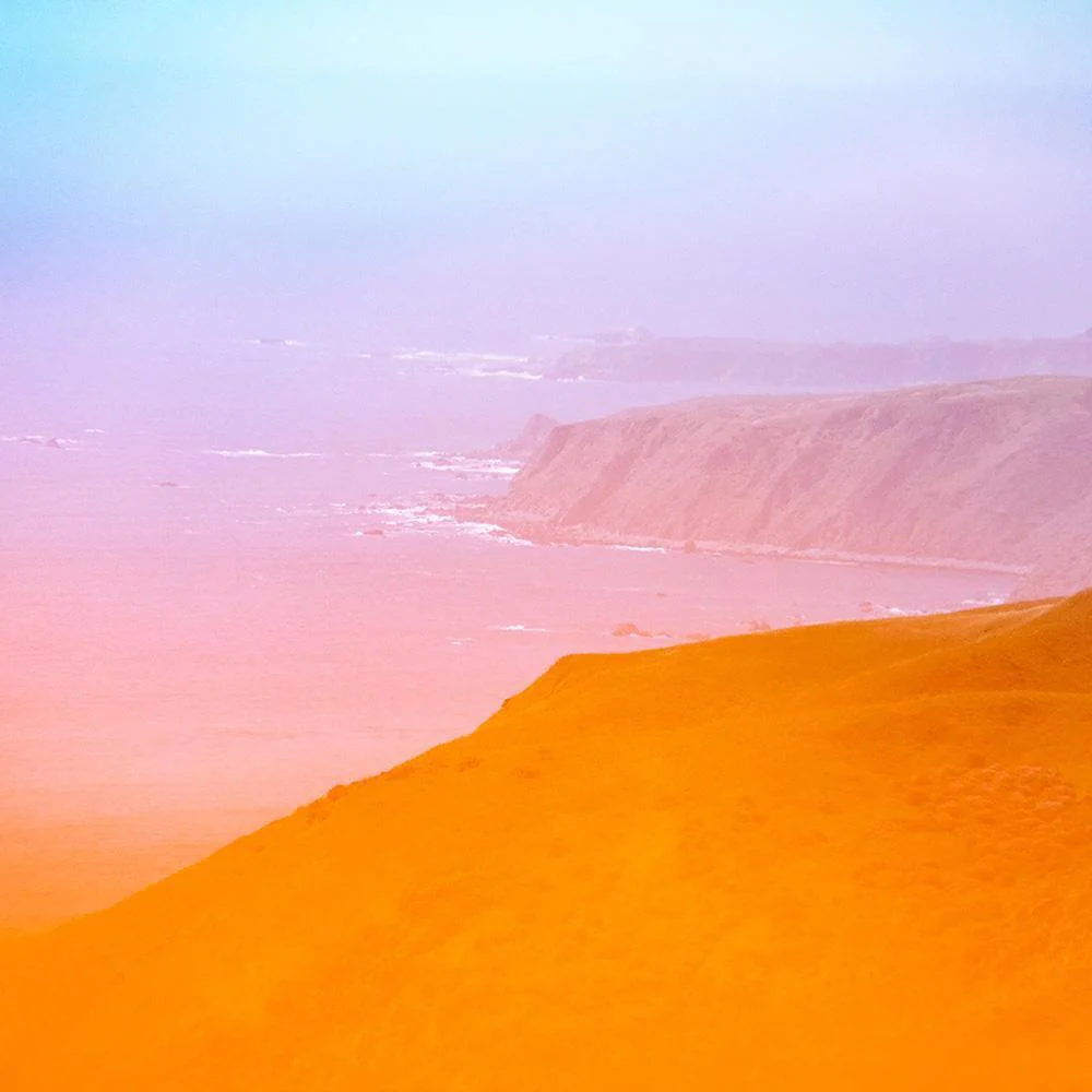During his residency at MacArthur Place, Brian Merriam sought inspiration in the surrounding landscapes of Sonoma and Marin County. Taking interest in nature’s cycles of growth and dissolution, Merriam created a series of photographs that symbolize the building up and tearing down of the natural world. Using wildflowers as a lens filter, he captured the coastal landscape. New, young, fleeting growth is layered onto old, slowly dissolving, and weathered terrain