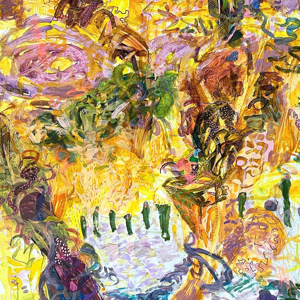 The series The Unofficial History Of Tomorrow examines social landscape and inherited trauma through the lens of painting tradition, street photography, myth, food, and sci-fi. The paintings employ playfulness and abstraction to reveal the pain and destruction of daily life, while also recognizing the beauty and dignity of the marginalized. They also explore the notion of “Asianess” in art.